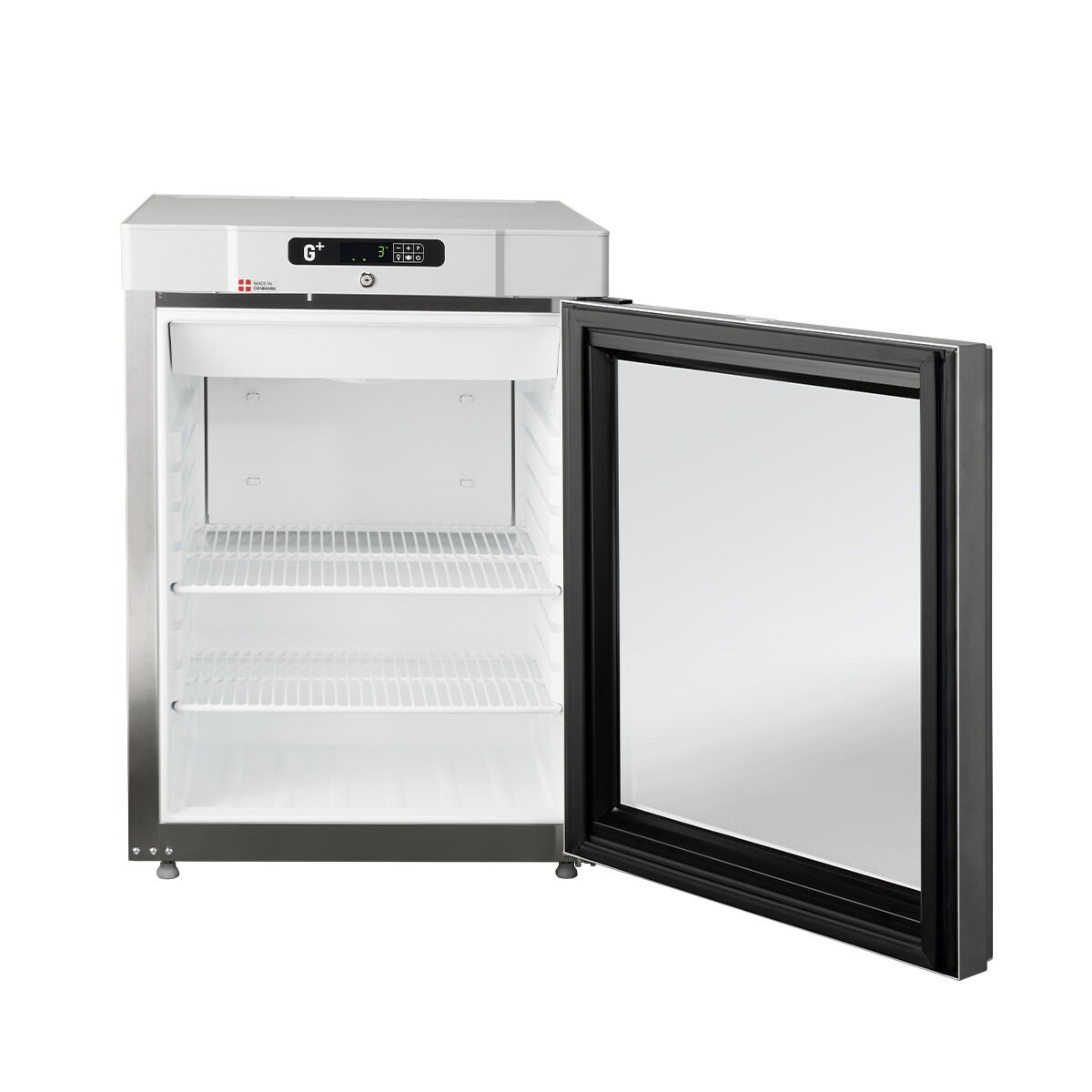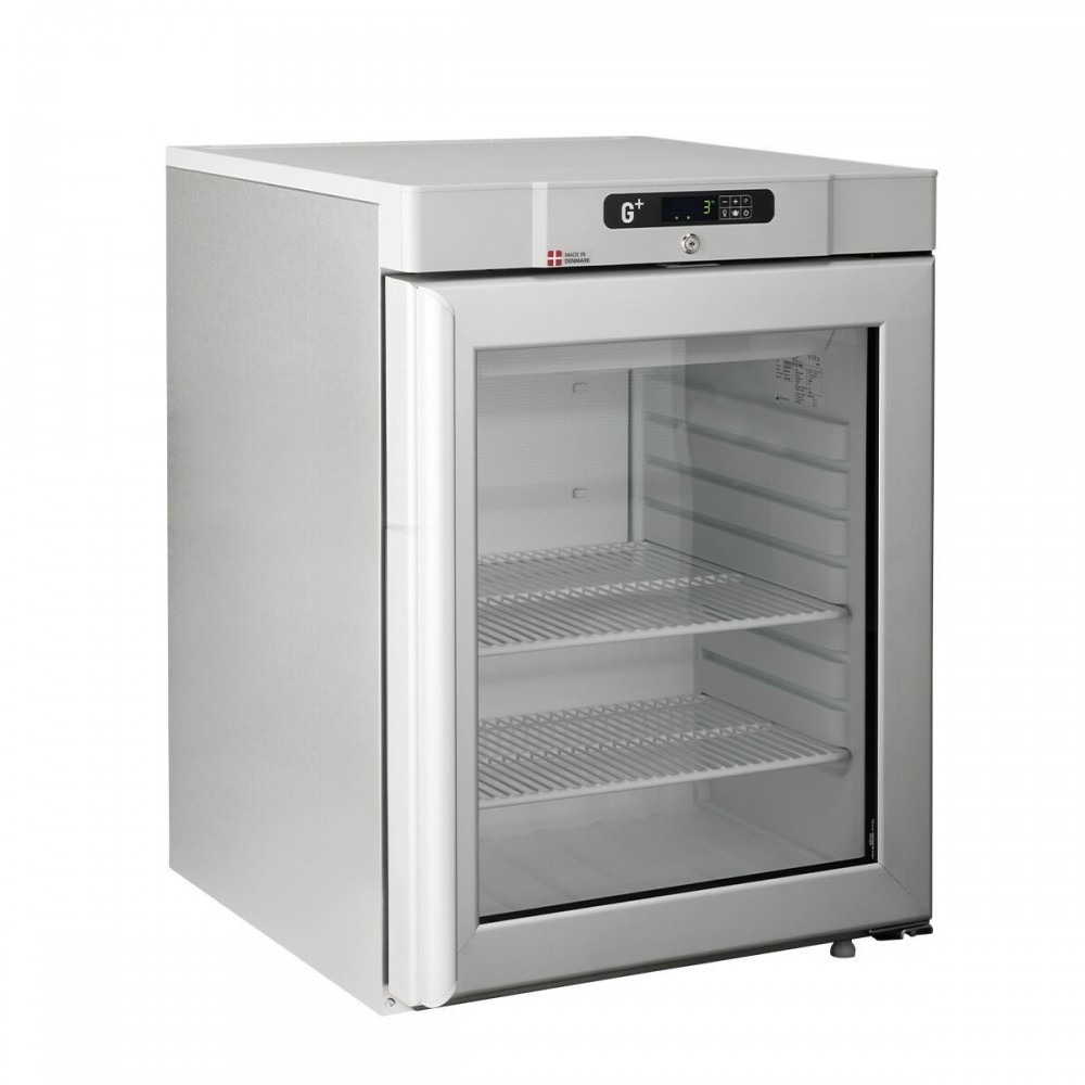 Features a glass door with integrated LED light and can be used as a display cabinet for quality products that require a stable temperature.