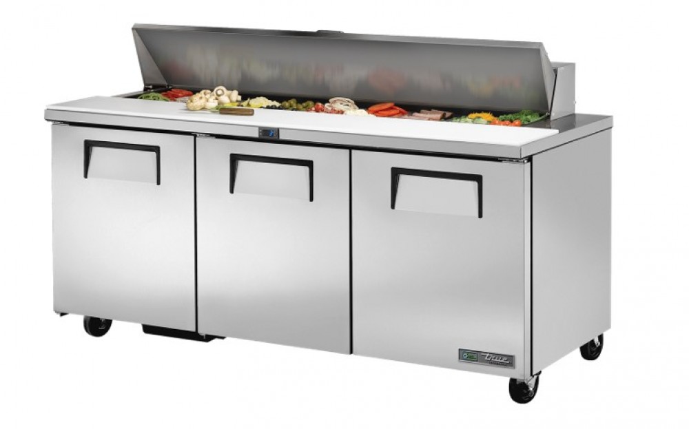 A great quality three door prep counter, the True TSSU-72-18 is ideal for fast and efficient salad, sandwich or other snack preparation. Supplied with 18 1/6th size gastronorm pans, you can keep large quantities of ingredients close to hand, as well as large quantities of additional produce behind the stainless steel doors. Perfect for customer facing or back of house use.