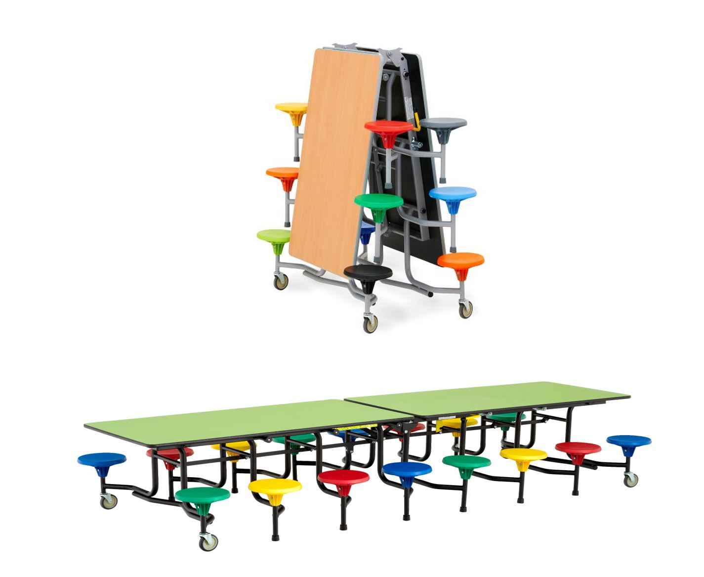 • Smart folding & space-saving storage This unit seats 16 young children, each with their own individual stool, encouraging comfort and independence at mealtimes or during play.