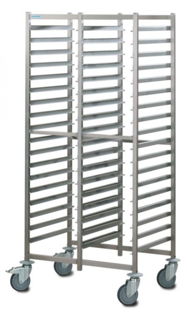 The Hupfer gastronorm trolley RWG 2 / 36 GN 75-L-U features a rail spacing of 75 mm, which gives it a 50% greater capacity (when GN containers without lids with a depth of 150 mm are placed in it) in comparison to other products.